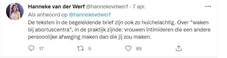 Zoals te verwachten kiest Hanneke van der Werf er echter voor in de ontkenningsmodus te blijven. Zo maakt ze zich boos over de vermeend “huichelachtige” woorden van Stirezo, omdat die het heeft over “waken bij abortuscentra”. Dat “waken” komt neer, aldus de D66’ster, op “vrouwen intimideren”. Maar wie huichelt er hier? “Intimideren” is immers het lievelingswoord geworden van het abortussyndicaat waartoe ook D66 behoort: dat onfrisse monsterverbond tussen feminisme en linkse politiek enerzijds en winstbeluste abortuscentra anderzijds. Samen optrekken tegen het ongeboren kind, dat zich niet kan verweren.
